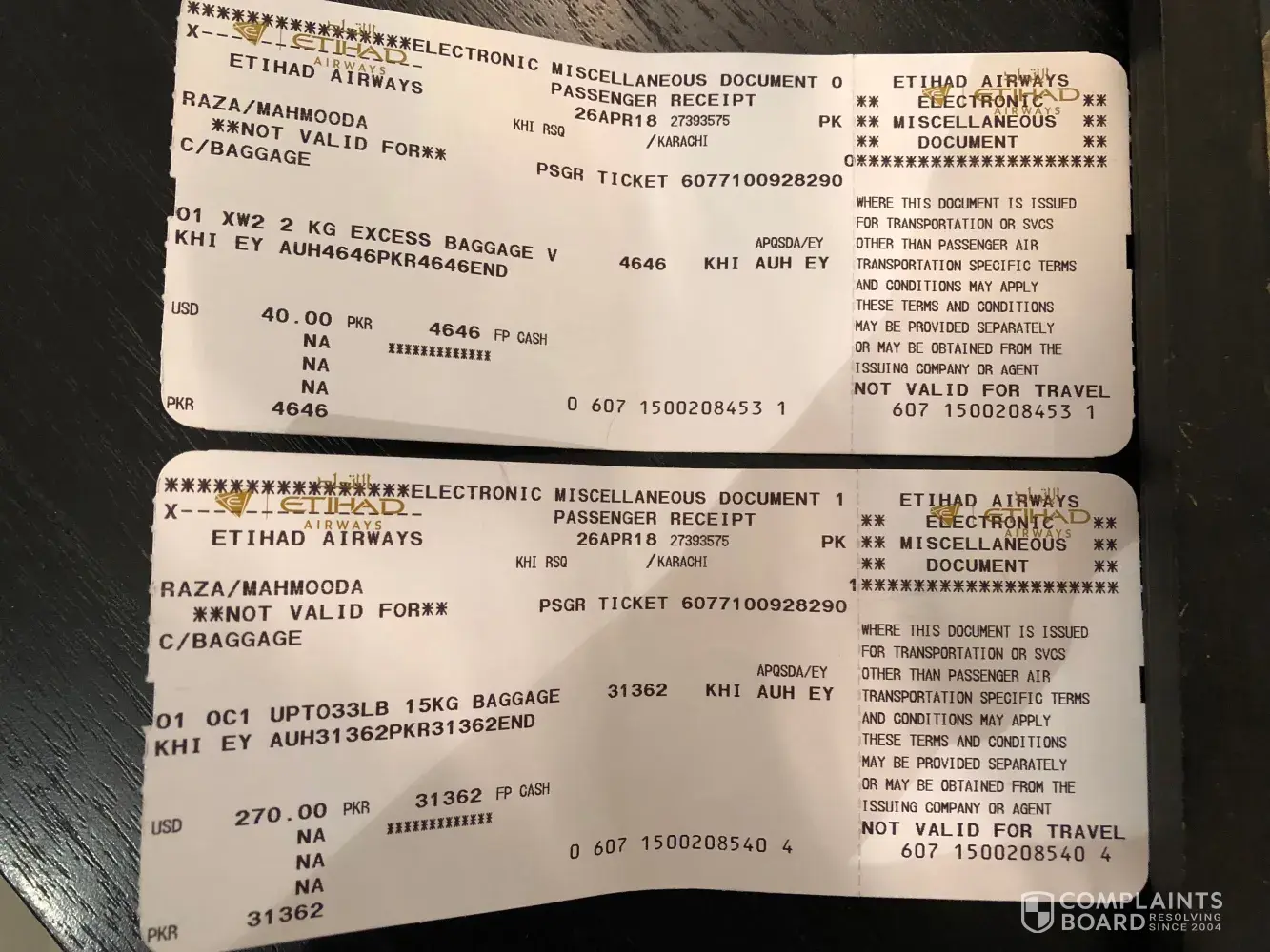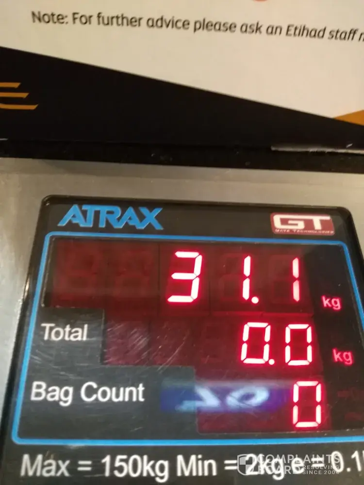 Airlines Etihad Airways Customer Service charge for excess luggage alleged by etihad