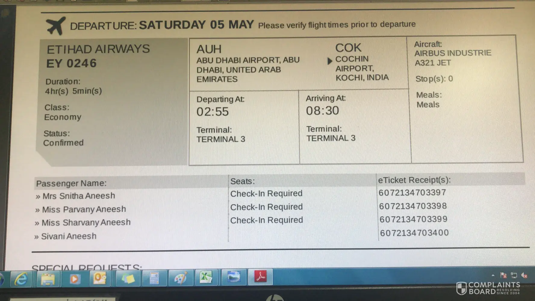 My self ashok, booked flight ticket from Bahrain to Bangalore for my parents and child on 01st April 2018 through my credit card (ticket attached), we were there in the bairport 4hours before the departure, while check in etihad officers not allowed us to travel becouse of in my parents passport doesn't shown sir name in which while I mentioned sir name as per my son (child) passport, requested to etihad officers and spoke to customer care around 1 hour, nobody help to solve the issue, and demanded BD.300 for cancellation of existing tickets and reissue of new tickets, I thought that all officers and customers care played with me to simply to delay with asking documents through mail and so on. I was very upset with the response I got.