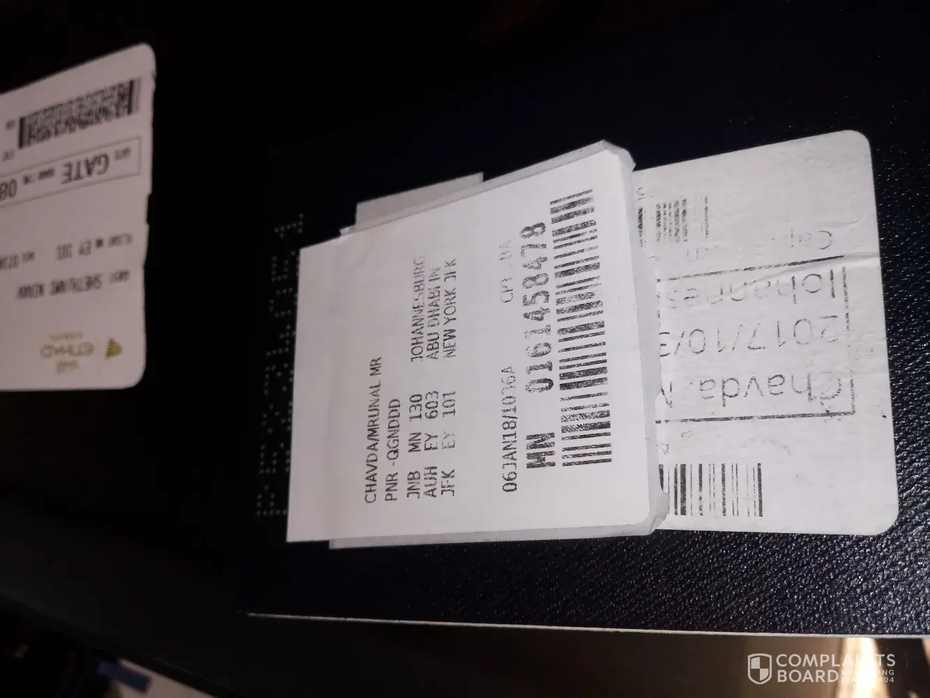 My name is Mrunal Chavda. I travelled to JFK New York Airport from Cape Town. on 6th January 2018.My PNR is OOHZHS. My journey from Cape Town started with MN 130 to JNB. From JNB I took EY 603 to Abu Dhabi. Finally, from Abu Dhabi to JFK in flight number EY 101. My baggage tag is MN [protected]. I reported an incident of missing bag to Abu Dhabi Etihad Staff and they assured me that my checked in bag will be delivered in your final destination (JFK New York).However, I reached today in 7th at JFK and the checked in bag was missing.