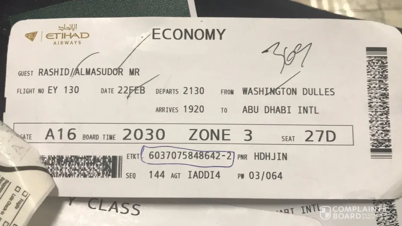 With due respect, I'm a regular passenger of etihad air. Last February 22, I flight from IAD to Dhaka. The lady who issued my boarding pass that was wrong so I missed my connecting flight from Colombo to Dhaka. I didn't get any help from etihad and the partner airline srilanka airline. Besides this, they showing the brutal attitude and fell me a deep bad situation. I've an appointing meeting which was postponed due to my absence. I'm told them issue me a connecting flight but they didn't do that. I lost my wallet and phone to the airport which belongs lot of important documents, card and contact details. With the help of a passenger, that contact with family and they arranged a ticket from Colombo to Mumbai, and Mumbai to Dhaka at Jet airway flight. That cost extra $ 427 dollar.