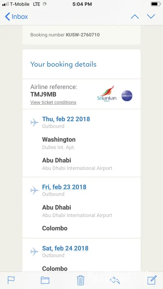 According to all of this situation, I'm complaining about my extra charge, new ticket cost and my phone and wallet which I lost from the Colombo airport all cost is near about $5000. Beside this the hassle I faced physically and mentally last four days which is unplayable. So I hope, you'll take it a major issue and compensate my amount as early as possible.