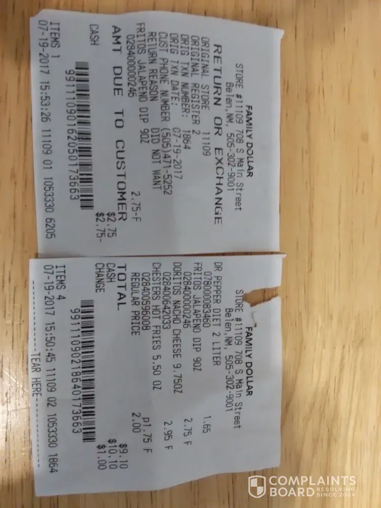 I brought a mop from Family Dollar for 4.25 and it broke the same day. I took it back to the store and the manager at the time, called another manager on the phone and she told him that I can not return the mop because I must have handle it too rough. I told him I don't see any signs saying you cannot bring merchandise back. they did not ask when I brought the mop or did not care to see when I purchase the mop. they just seen it was broke. I did not get a chance to use the mop one time.