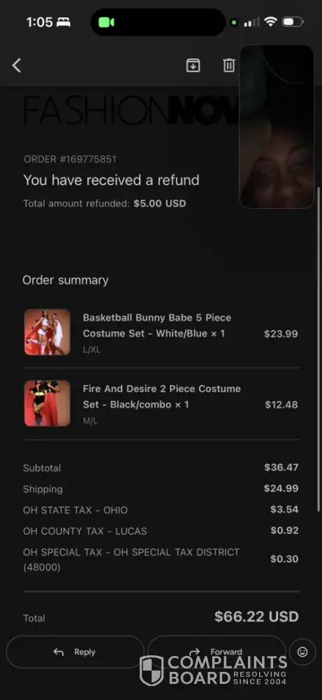 Fashion Nova returned not all of my money back as a refund! And meanwhile they sent me a message saying that the proceeded all refund (http://take.ms/p3h2pI)! THEY EVEN CALCULATED THE AMOUT TO BE REFUNDED! (http://take.ms/J4DyI). Instead of the overall sum they had to pay me they paid only $27.98! Where is my $5.59?