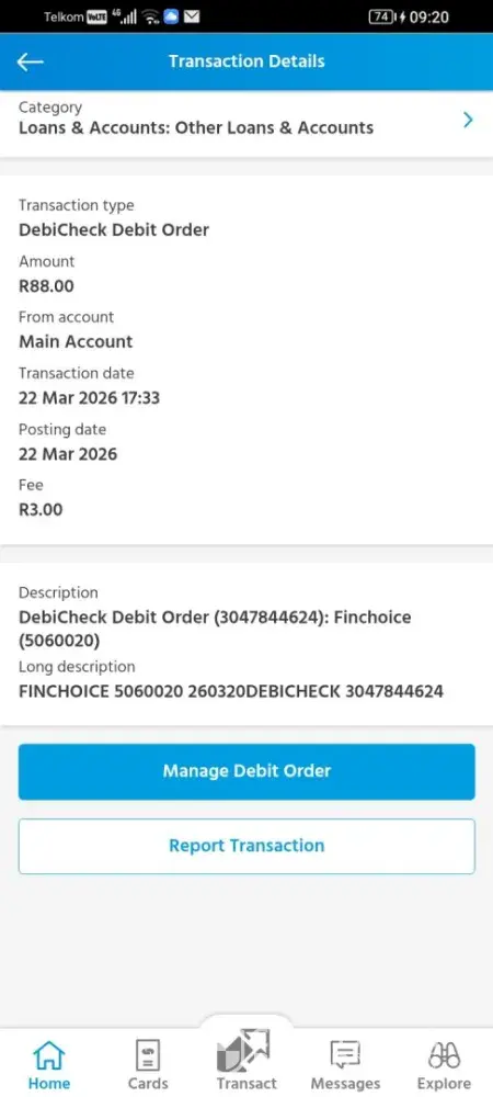 would you explain why did the debit order went off on the 14th this is not part of our agreement am only getting paid month end