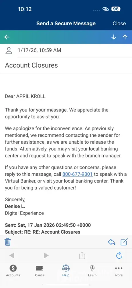 I am going to my local branch tomorrow morning to see if there is anyone there that can help as I feel like I'm running out of options.