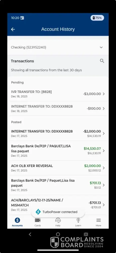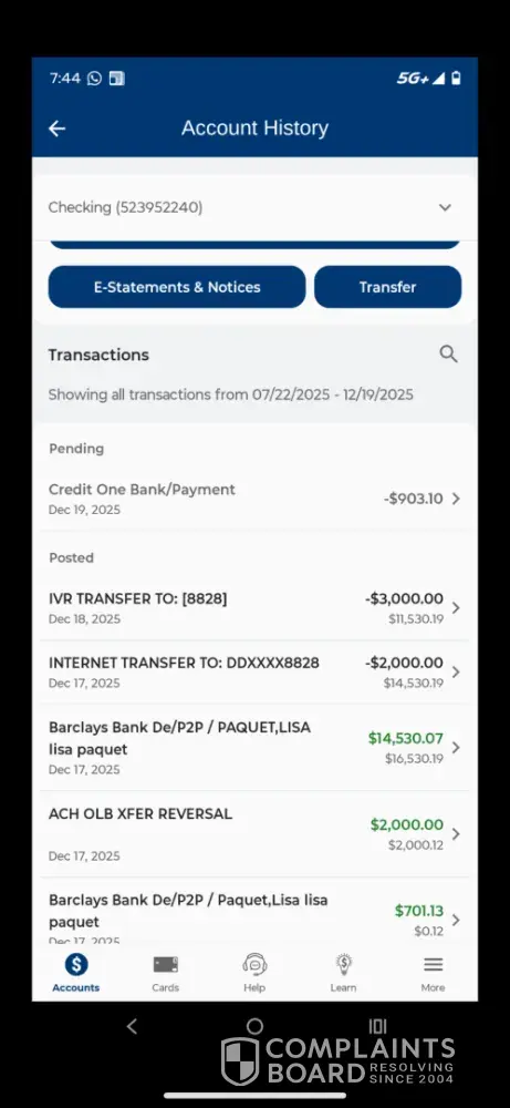 On 16/12/2026 I received $14,530.07 from Barclays Saving account number ending …8769 and $701 from Barclays savings ending …6267 on my First National Bank of Texas Checking account ..it was sent by a friend Lisa Paquet .. after the money settled on my Checking account ending ..2240 few hours later FNBT illegally closed my account without my notice and...