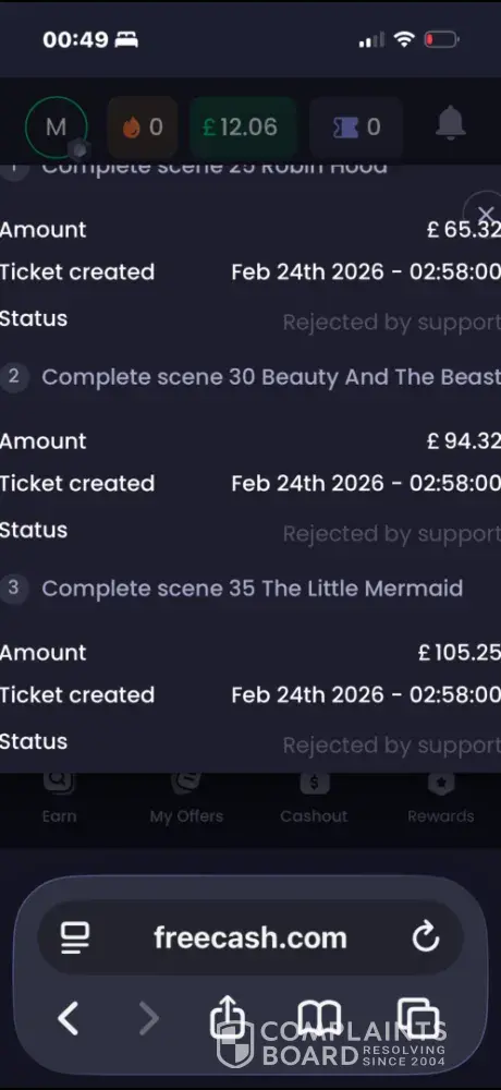 there is a game on freecash which is by freecash called dice dreams. The game rewards you for each time, points which get added to your profile and then what you choose to do is up to you, in my case as with completion of surveys, I convert points into paypal and withdraw into that account. For the most part it all goes smoothly and there hasn't been any issues. That then changed once I had reached and completed level 25 in dice dreams in which I should have received 6000 points. When I first advised support they said that if it has been less than 72hrs then just wait then after that create a ticket. I did create a ticket then I received a message in live chat at some stage a short time after saying that the team was behind on rewarding points, I'm not sure if they were speaking in general though or in relation to that game, needless to say I wasn't happy and wrote back 'this is ridiculous I've already been waiting over a week'. Now come maybe 5days ago or so, I completed level 30 which is the next level after 25, where you get credited for completion and it is also 6000 points. I also contacted support and they also said the same thing to create a ticket if it's been more than 72hrs. Just a extra bit of information aswell, with level 25 I never seen level 25 mentioned until after the 2nd or 3rd time of contact support team where as in the case of previous levels and surveys I would see them almost immediately. Now for the part which I find upsetting and a breach of ethics, I got a message on live chat saying that unfortunately I didn't meet the conditions of offers which is to complete them in 30 days. So we went from one staff member saying there will be a longer waiting time to get rewarded to getting another saying yeh sorry you didn't do so as required to get funds. I can tell you for a fact that I completed level 25 within a week if not less of starting offer. Also I have been in contact with trustpilot who have said you may wish to write a complaint to freecash for help or if you wish to take it further if not resolved, contact the police. This is so ludicrous to me to even lodge a complaint when you realise that all I've been asking for is to receive 12000 points that I'm owed, which is just $12 paypal. But for the lack of response, help and also in some cases being laughed and mocked by support team, I'll take this to what ever area of law I can. So please all I want is matter resolved and move on, I don't wish anything else