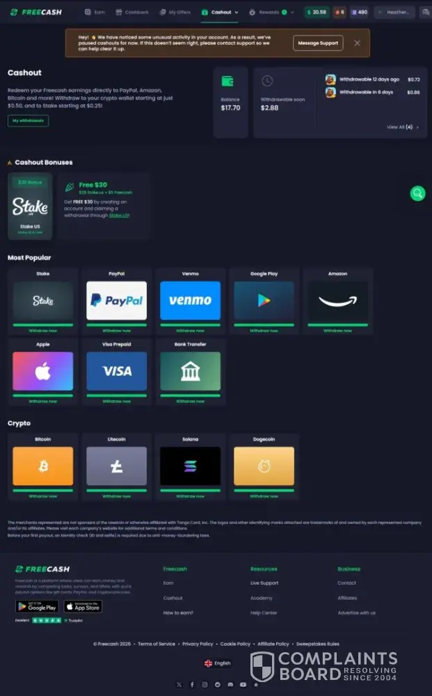Free Cash Review of Free Cash (freecash.com): Disappointing Experience and Lack of Support