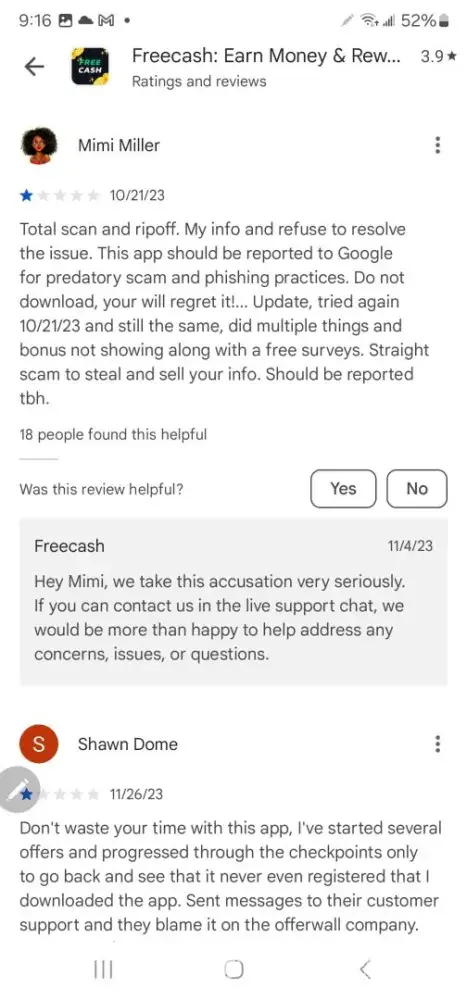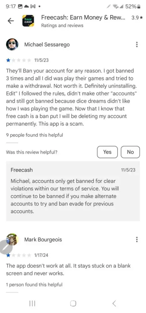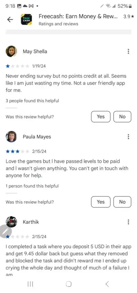 My experience along with thousands of other victims, with FreeCash app and their affiliated game, Dice Dreams, has been nothing short of frustrating and alarming. Like thousands of others, I fell victim to false advertising promising monetary rewards for playing games and completing surveys on the platform.