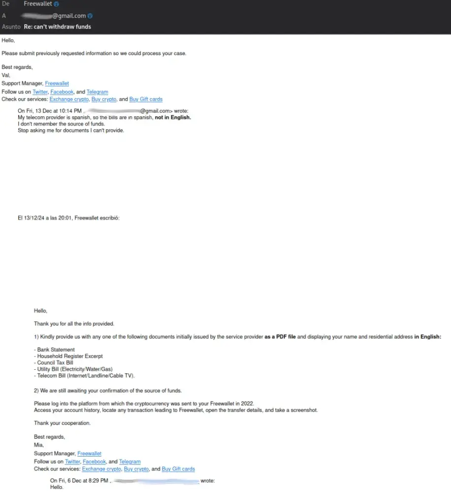Freewallet’s scam, orchestrated by V. and D, has affected many. If you have any information or have been a victim, please contact us at [protected]@tutanota.com.