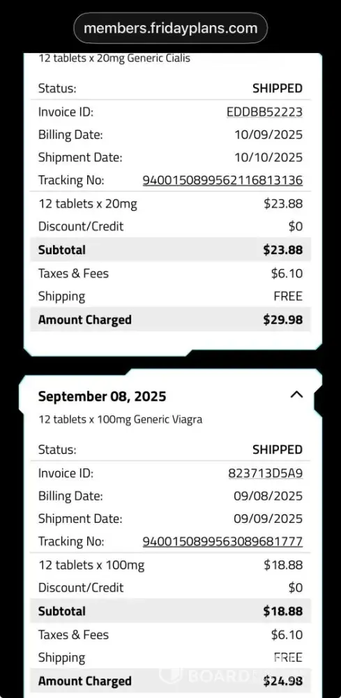 Well, all I can say is that you did something wrong bc I’ve been a member for over a year and have never had a problem. I order by the month and only pay $29 for 12 Cialis (maximum strength 20mg) which includes $6.10 tax. So the actual cost is $23, which breaks down to almost $2 a pill. If that’s too much for you, then you should try the websites that ship generic pills from India. I used them before but too many times my shipment was stopped by U.S. Customs and sent back to India. I pay less for 12 Viagra costing me $18 plus tax. The order always arrives 2 days after it’s made and I’ve never had a problem with the pills not working. I’ve included a screenshot of my two most recent orders of Cialis and Viagra as proof of my costs in case anyone thinks I’m lying.
