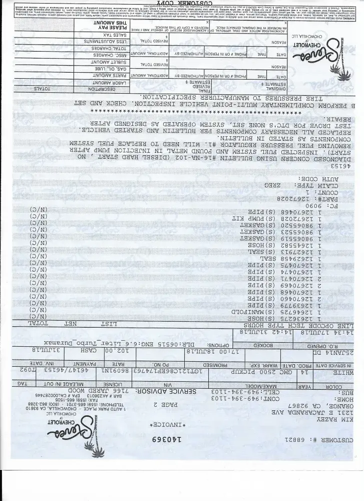 2014 gmc 2500 hd diesel / fuel injector malfunction / complete fuel system rebuild