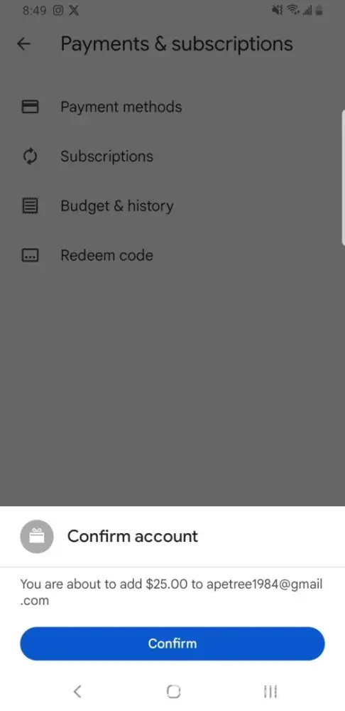 All I need is to load a $100 eGift Card I purchased into my Brugger's mobile app.
