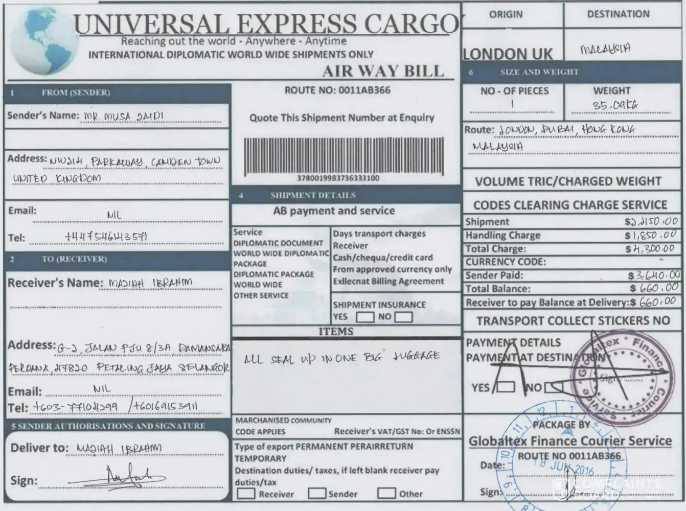 Email: globcourierexpresx@hotmail.com