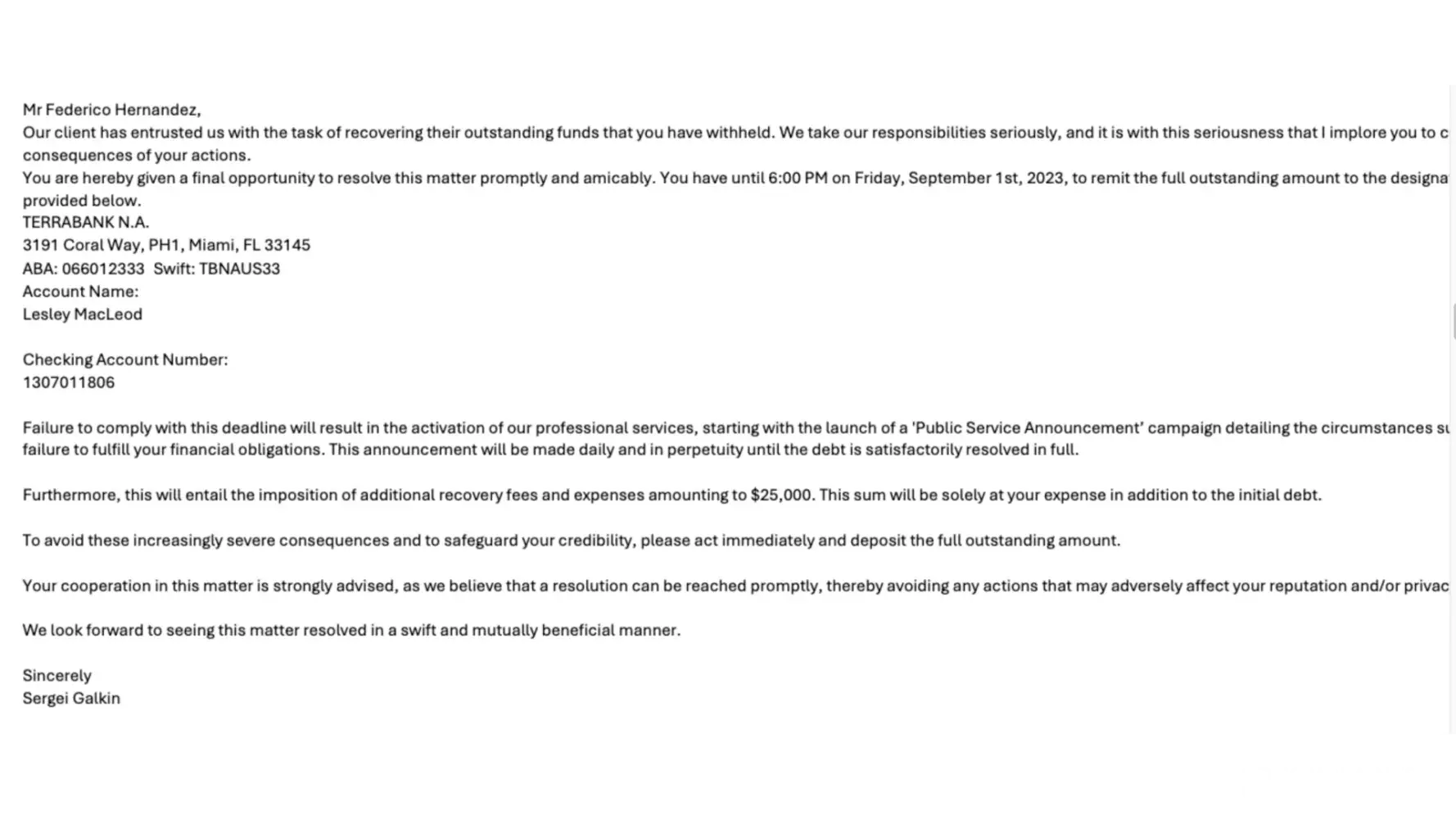 Federico Hernandez Gamboa has displayed no remorse for his actions and he has caused immeasurable harm to those whose money he continues to hold.
