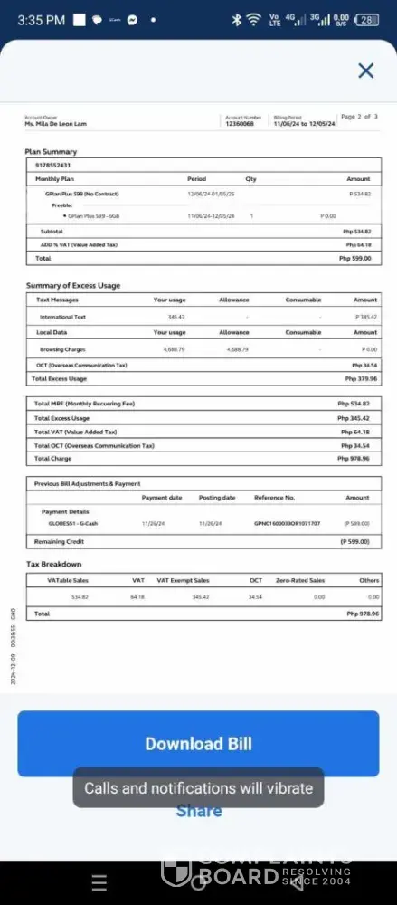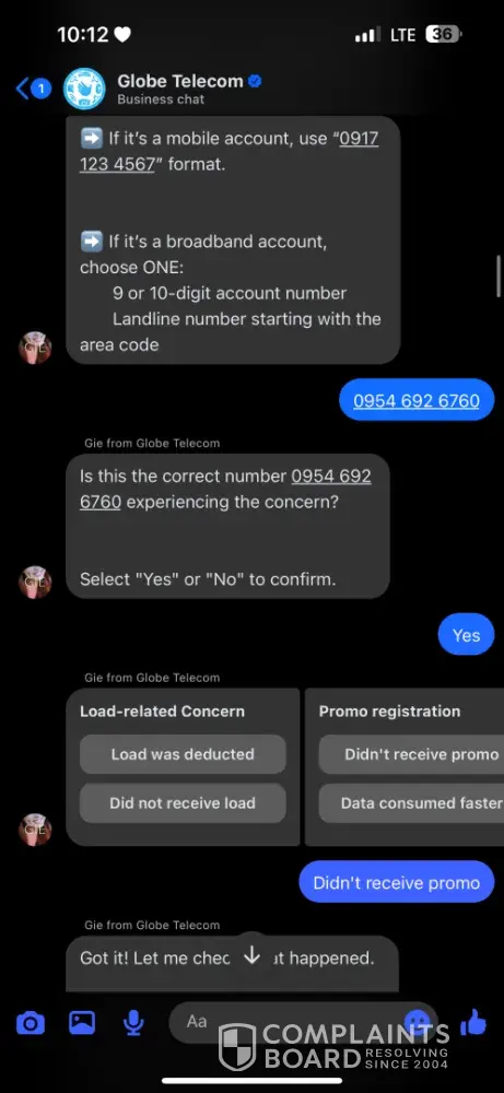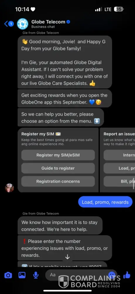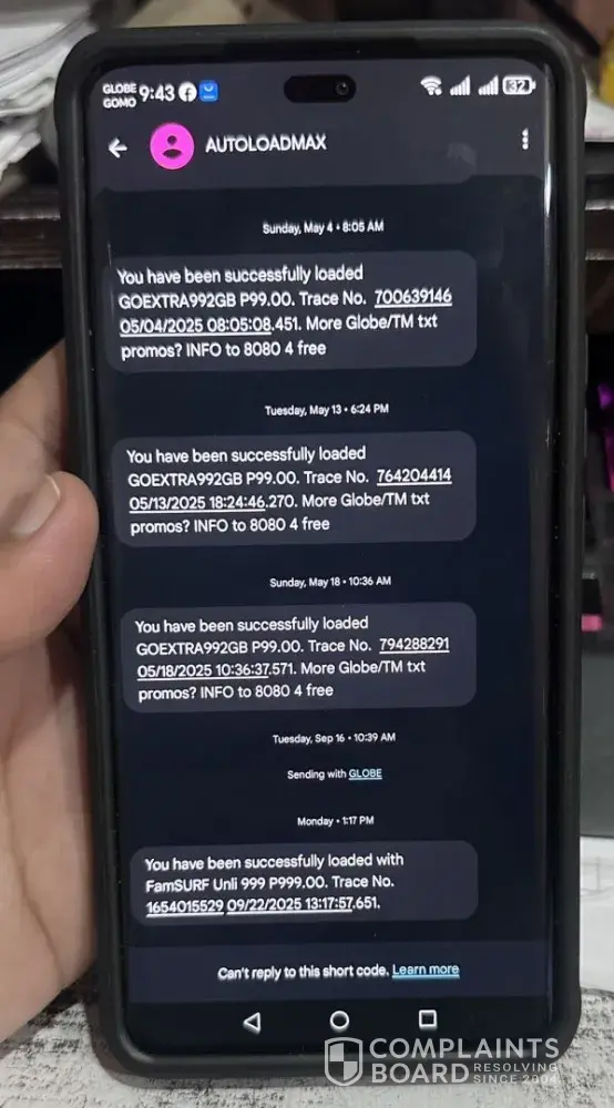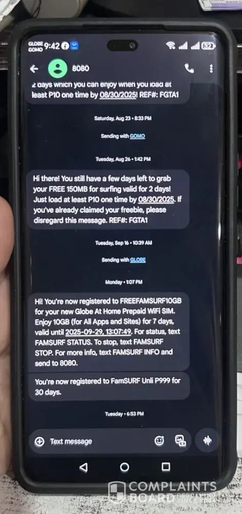 Read full complaintSubject: formal complaint against globe – non-delivery of famsurf999 promo