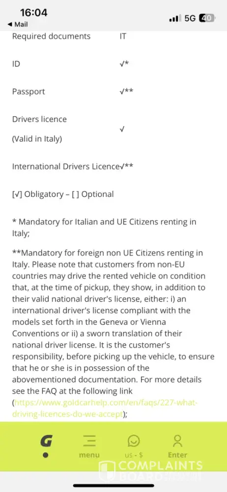565 GoldCar Rental Complaints