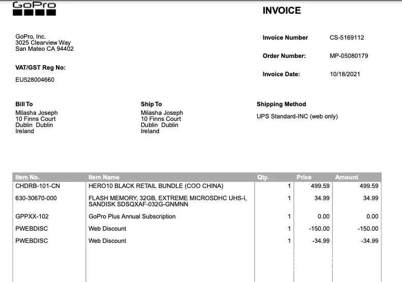 I contacted GoPro customer service and they asked me to send the screenshots to them, which I did, and then he started to give me a whole load of excuses of how mistakes can happen. I explained to him that I understood that and he sent me a 25% discount voucher which actually made the deal more expensive as it took the discount off the original price of A$819.94. He then argued that the 1 year subscription was not included, even though it states that it is included in the sale.