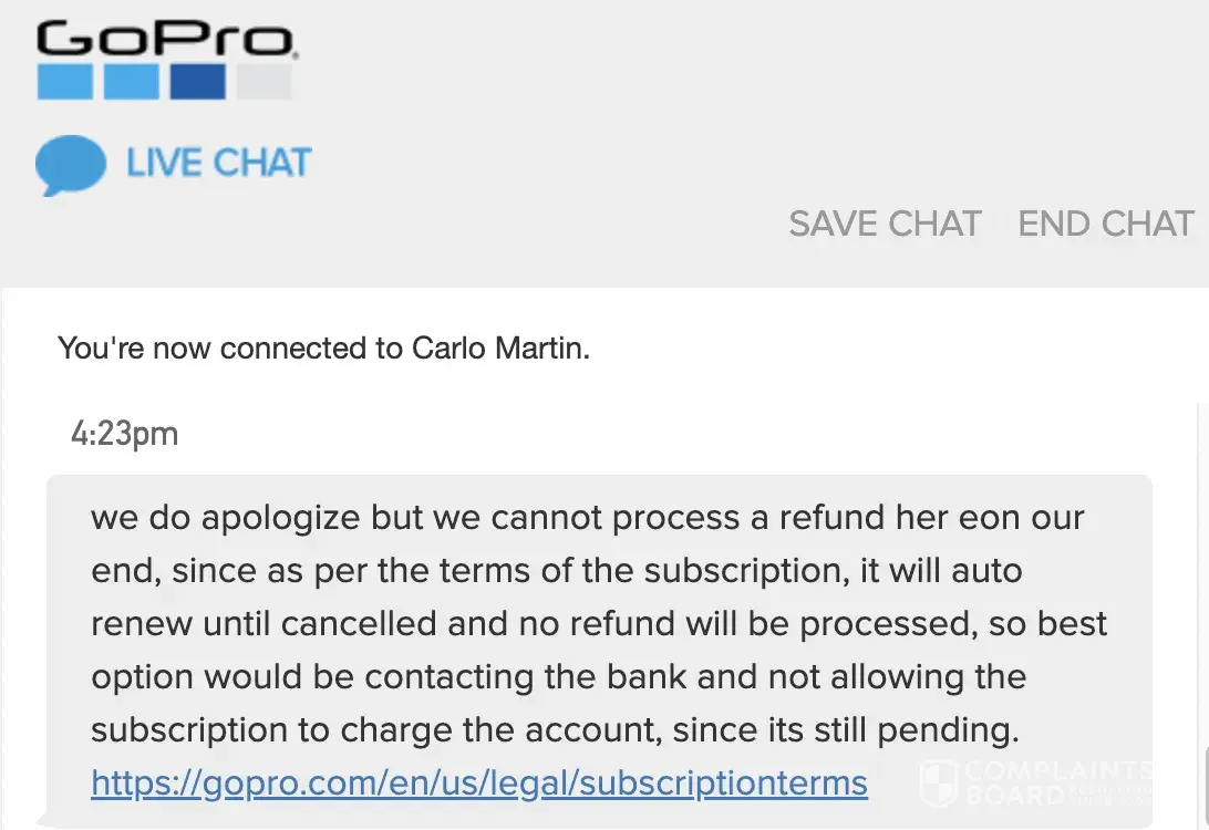 No refund for GoPro Subscription