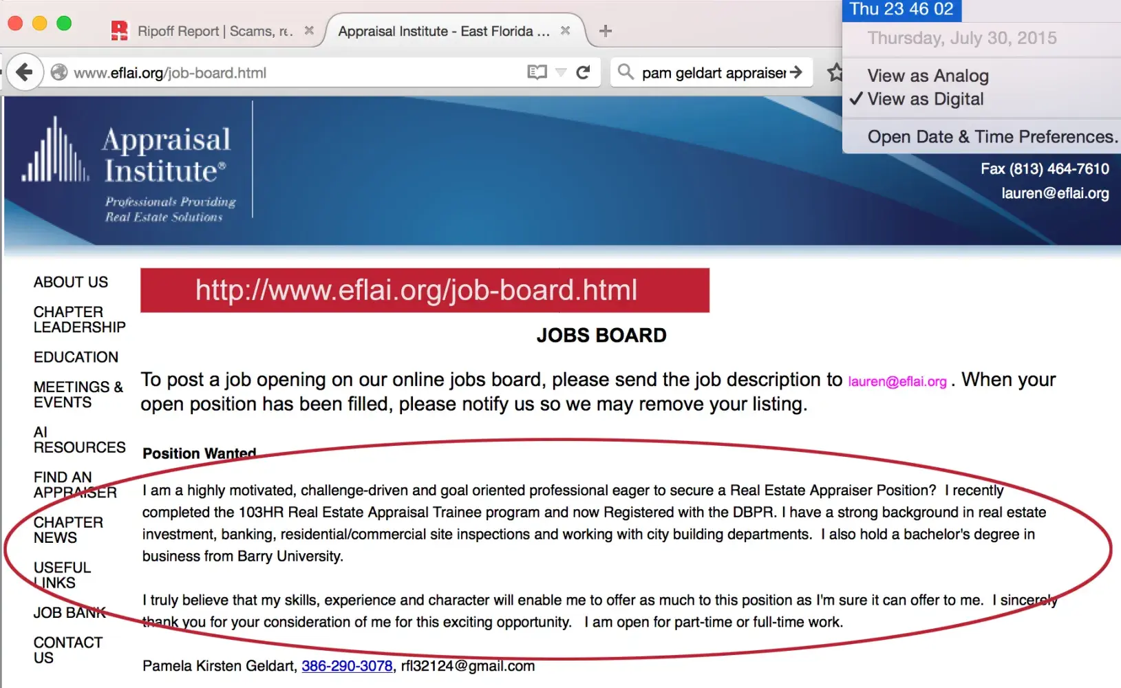 Read full complaint and 2 commentsPam Geldart Appraisal Trainee - Identity fraud and criminal mischief
