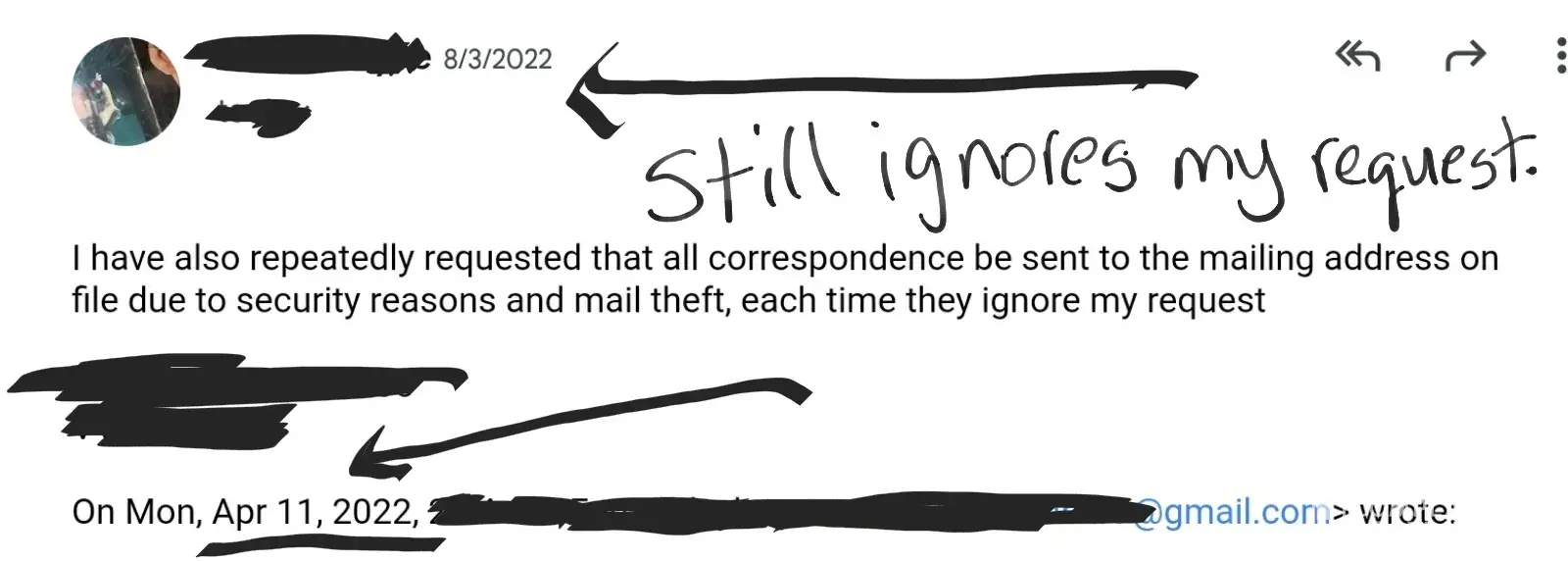 Email To CCRD on 4/20/2023 I know I get a little testy sometimes, but I hope the CCRD understands. that it is justifiable, I tried to close with something positive in my messages. and I fell that is thrown in my face as well. No one ever response do anything. I have to write about or even reaching out about weather good or bad. My messages are message...