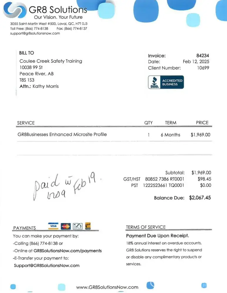 This company has been sending invoices demanding payment for their Enhanced Microsite Profile that apparently was set up for our business. Being that we do not recall this being set up we complied as they were linked to BBB in Canada on their invoices.