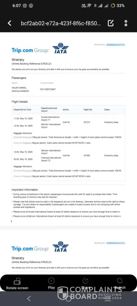 Already raised the online ticket (SR240019872) to Gulf air but haven't received any revert yet.