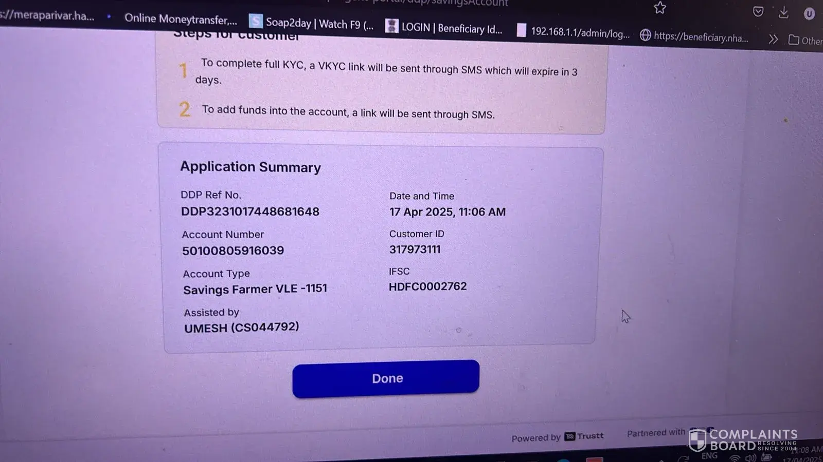 I have given my 5 family savings account to close after misbehave of hdfc bank staff asked me to go out of his branch. i have given on dated 25/10/2019 but till now they did not closed my savings account