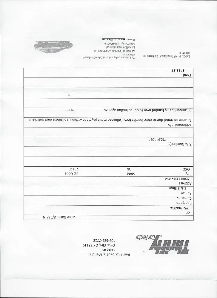 I rented a car from thrifty on aug 22-25. I returned it on time and full of gas, not knowing about a border fee. I went to Indiana to see my sick Aunt. This situation put me in duress because of having a sickness in the family, then the extra fee on the contract. It maxed my card out. I had enough to pay for the regular fees i agreed to. The over the border...