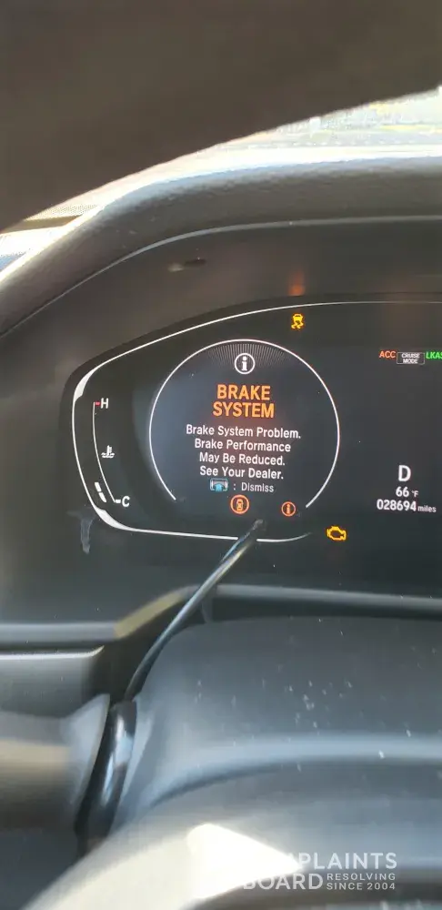 • BRAKE SYSTEM - Brake System Problem. Brake Performance May Be Reduced. See your dealer