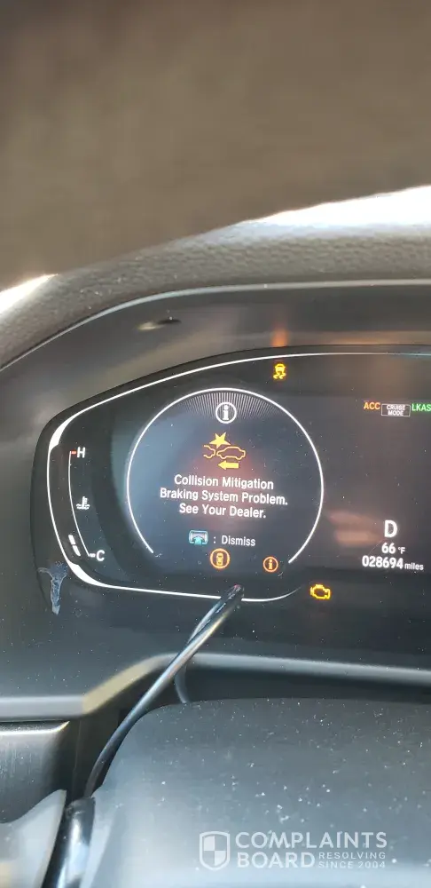 • COLLISION MITIGATION - Braking System Problem. See your dealer
