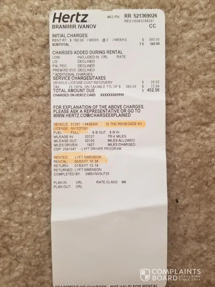I hope that we can resolve this issue. I do like using Hertz both in my business and personal affairs and would want to be reassured that Hertz would make every effort to correct the mistake that was made. I have tried reaching out to Hertz via phone, but the customer service representative forwarded me to billing, who directed me to send an email to customer relations. I have not received any response from customer relations.