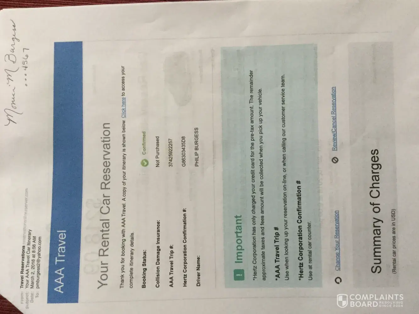 I reserved a car rental through AAA.Hertz was the rental company.i got a reservation for 4th of July weekend for our family trip.i get there to the location to pick up the full size car, they didn't have the right car it was a smaller one a Kia, anyway I asked them to get me something bigger they did but when I went to proceed to pay they told me there was a $200 deposit plus the rental charge?now my wife and I. Are very unhappy with Hertz and we do not recommend anyone else to use them ever!