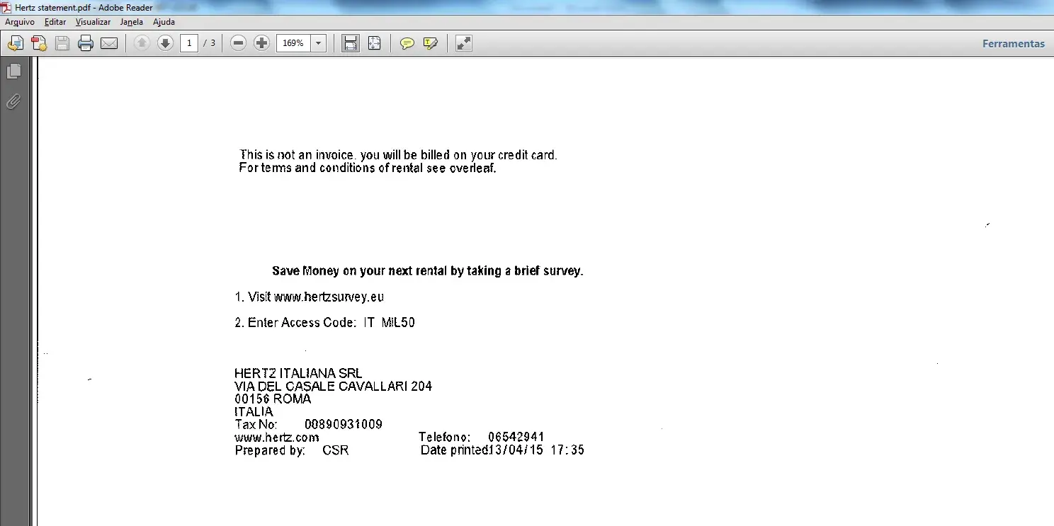 Bottom line, watch your credit card charges from HERTZ.
