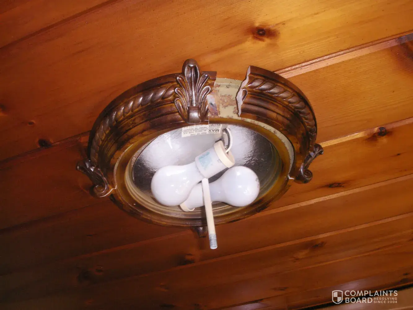 We installed a flush mount kitchen light and one day while cooking I heard a loud pop. the base which looks like wood and is plastic burst. Luckily the glass shade did not crash down to the floor. When I called the company I would have to prove that I am within the 5 year warranty. I purchased with a Home Depot card and when I tried to investigate how long it was, they would only go back 6 months. Well, I will not buy from Hampton Bay anymore. Luckily I did not get injured.