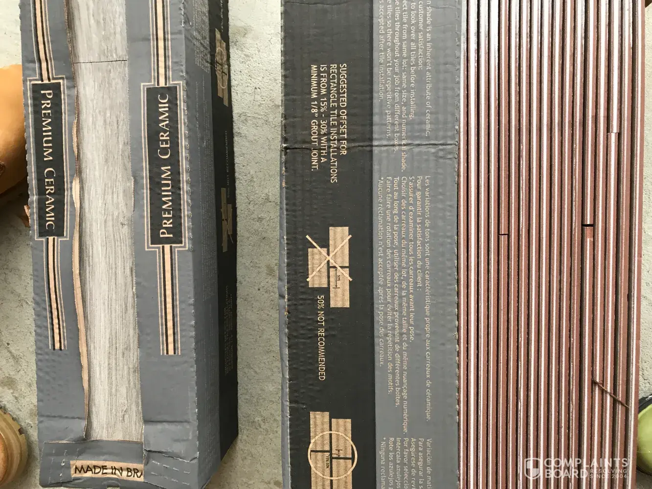 I can't believe the terrible service, the Home Depot associates moved every thing from outside to the porch, the cardboard of the boxes are so wet, a lot of tiles are broken to the point that you can't even lift some of the boxes because they are falling in pieces (totally broken) at lease 5 of them, 2 concrete bags are hard and I cant find the separator of the tiles.