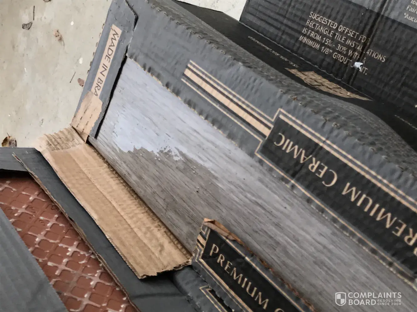 I can’t believe the terrible service, the Home Depot associates moved every thing from outside to the porch, the cardboard of the boxes are so wet, a lot of tiles are broken to the point that you can't even lift some of the boxes because they are falling in pieces (totally broken) at lease 5 of them, 2 concrete bags are hard and I cant find the separator of the tiles.