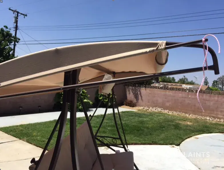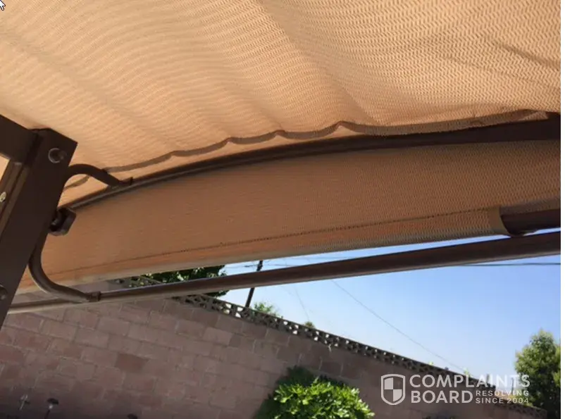 I purchased this swing in 2015 at the Redlands CA location. It was on sale at a very good price. I didn't actually assemble the swing until this year. When I did, I discovered the canopy that was in the box is too small, it probably is for the 2 person futon swing. I visited the store. This item is still available on line. They referred me to call the [protected] number. I called and spoke with a very nice rep. She explained that I'd have to purchase the correct canopy for $65. My complaint is that I think Home Depot should provide me with the correct canopy that I paid for, it was not my error that the wrong size canopy was packed in the box. I have photographs to demonstrate the canopy is too small for the swing.