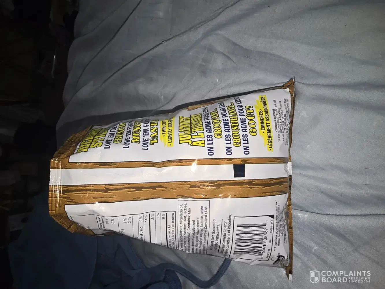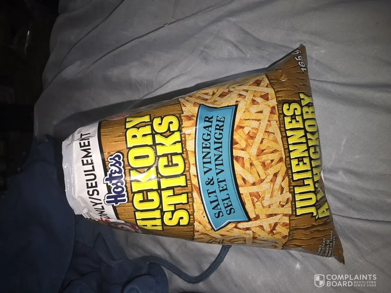 Desired outcome: Replace the items. 2 bags of Salt and Vinegar hickory sticks. We need them big bags.
