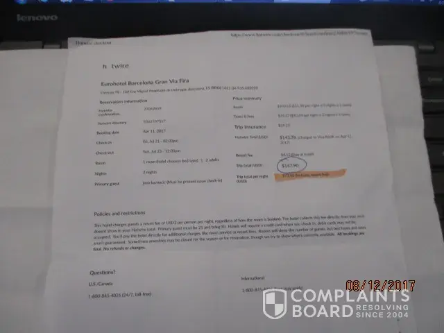 Hotwire Booking to the hotel not done upon arrival