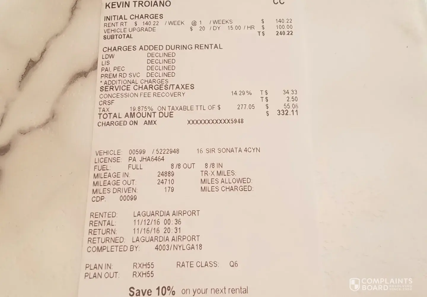 I spoke to Sheng on Sunday, Nov. 13th at Hotwire to express a complaint on a forced upgrade fee that increased our original transaction from $195 to $350. We received this upgrade through an employee at Thrifty named Misty. She was very aggressive and deceptive. She said because we didn't get there on time car was gone. It was 3 hours past pick up time. (plane delay) They didn't have the car then she said we have to upgrade you to full size, extra $20 a day and then 5 days somehow ends up being $350. It was almost 1AM and she was a scam artist working for what is likely a scam company. She did not seem to be in integrity at all. Said my rate was $20 a day and then said with upgrade and extra $20. When she saw what my rate was ($20) visibly disappointed. And then hands me receipt saying something about a weekly rental plus an extra day and it goes from $40/day ($200 for 5 plus taxes) to $350? Total BS. And she knew it and was doing it to people before me. The customer ahead of me said he called to have them hold it and they didn't. They are forcing upgrades at this location.