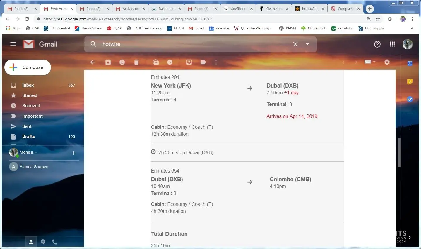 I have an ongoing case under itinerary # [protected]. Phone # associated with the booking is [protected]. Keith Lavoie and Monica Thomas are the customers involved. Last meaningful contact was with Hotwire supervisor Sheryl on 5/17/19.