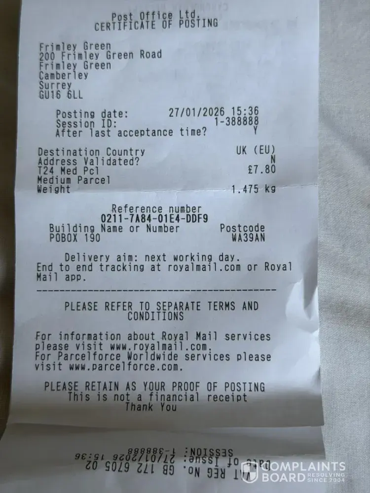 I have received my order in a broken and damaged bag. On the 6th of June I emailed them with the list of missing items and I asked them for a refund of £27.00. Only on the 28th of June, almost a month later, they finalized the trail of back and forth emails saying that they refuse to refund me because at their end, the order was sent complete. I then contacted them on the live chat to ask to speak to the complaints department. They refused to do so saying that my case has already been solved and closed. So they did not refund me for the £27.00.