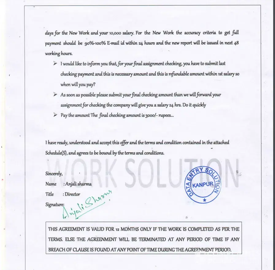 This is a fraud company this is a fraud company this is a fraud company this is a fraud company, these [censored] people just take money from the needy and tell them that they will be getting paid in the end of the month 1st they say that the person has to pay 750/- & again in between they make new agreements saying that the person has to pay 3500/- and...