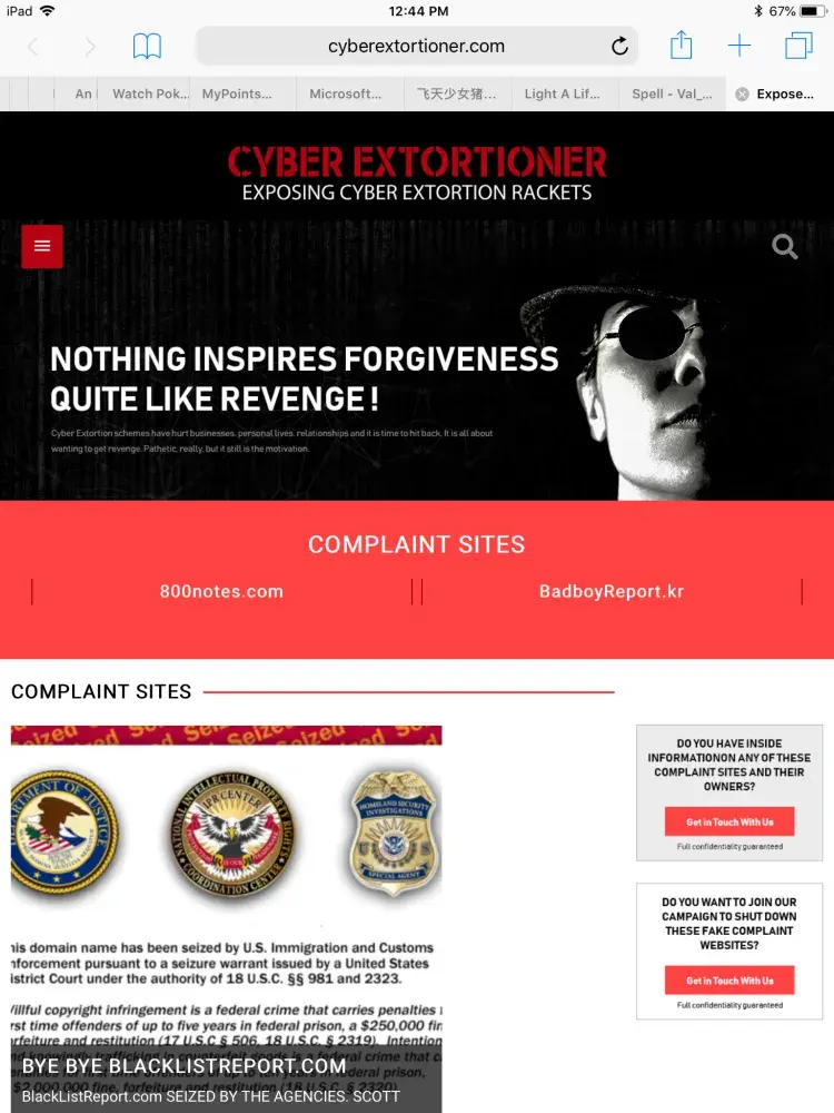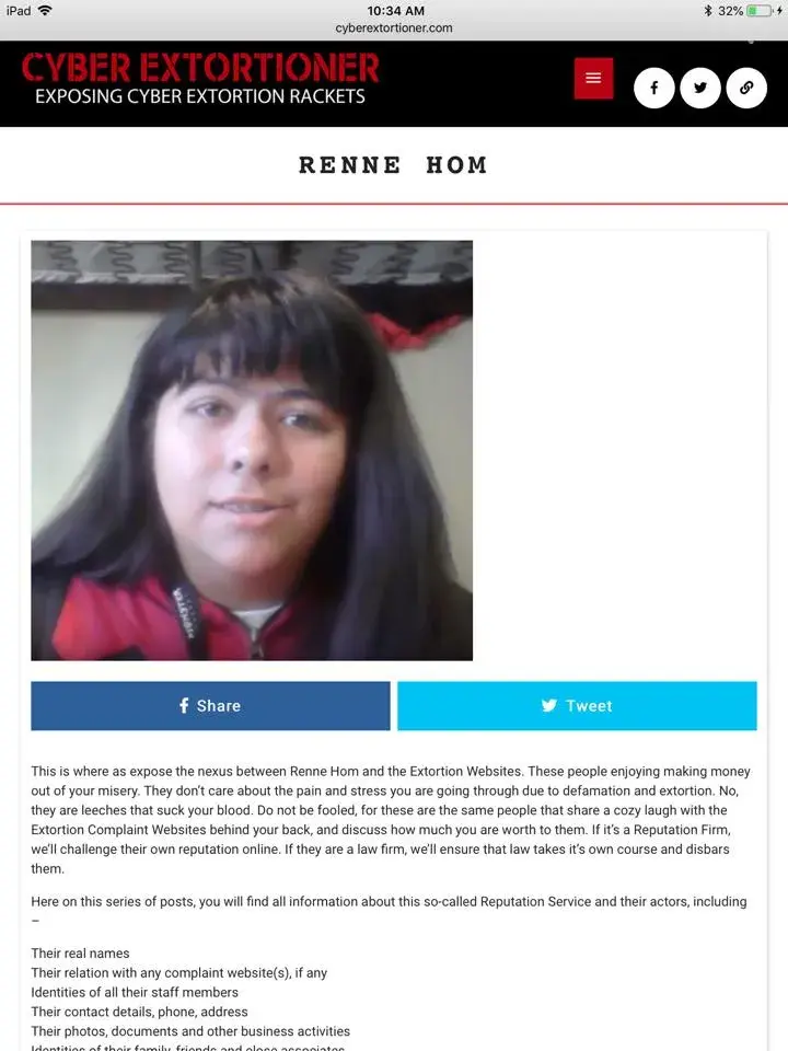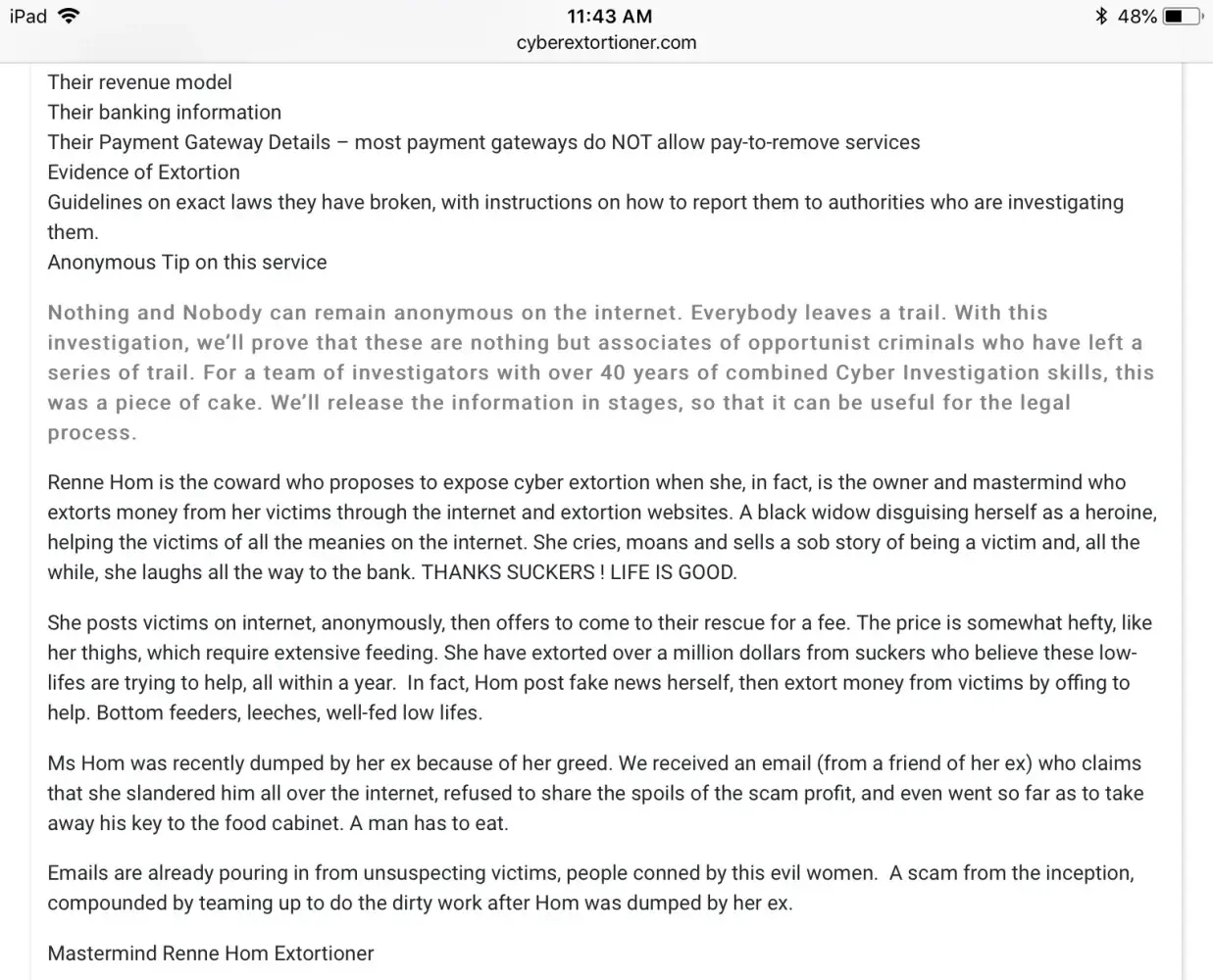 I'm not a cyber extortioner as the poster claims, especially when he can't prove it to back it up. Also, some of my folks are posted on that site as accomplices in an extortion scheme. It's all lies! This is just an attempt to hurt me and other innocent people who aren't involved in any crime. It's just a distraction, created by cyber criminals with the...