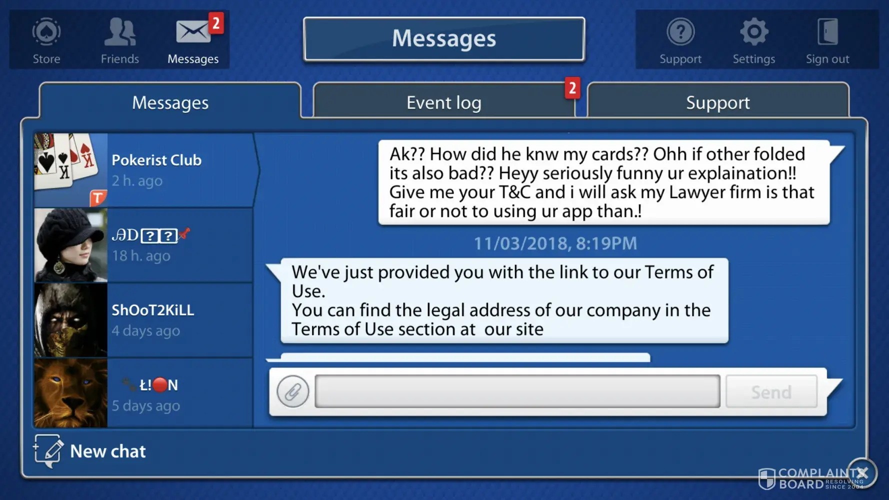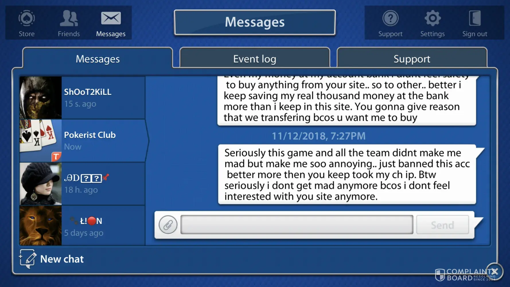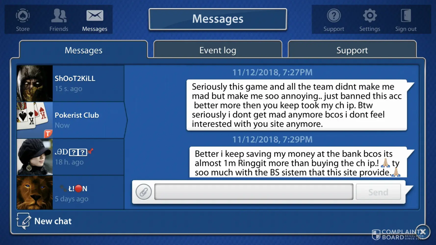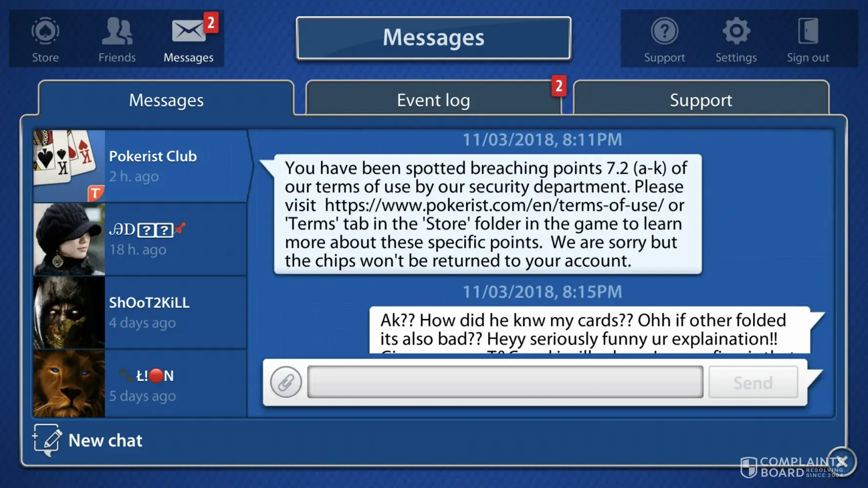 They keep taking my chips and told me that I have been spotted transferring chips!!! Seriously many time happened and I feel sooo disappointed and seriously they're bloody scammer game site.!! They didn't provide fair games as they're certification has been mentioned.!!! They're bloody cheater actually and pretend they are right!! They took all my chip...