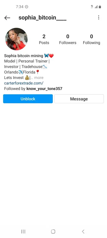 I received a group message on Instagram from someone I know of stating they received money from this Sophia_bitcoin. They claimed they got back a certain amount of money. I'm don't know anything about bitcoin but was interested. It sounded too good to be true. I contacted the person I knew of several times asking how legit this was. She lied too and showed...