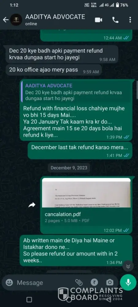 Had and free consultation apt 11/29/2023 with a laywer for bankrupcy. I was talked into the more expensive bankruptcy. I paid $450 down and then was not able to come up with the additional amout. I have been trying for several months to get the refund. I was told they were too short staffed to start the refund. Now I have been told it has been in the mail for 3 weeks. I would like this refund thank you