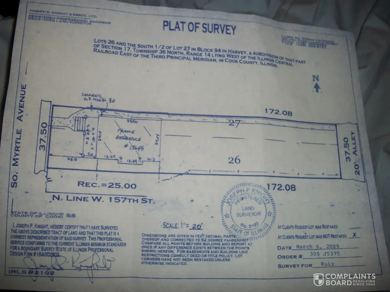 joseph knight surveyor did not honor there policy by not being helpful at all in assisting me in understanding my survey that was done my house joseph knight him self "said he would not visit my home to help me understand my survey unless he had alot of orders in my area and these is after being paid.