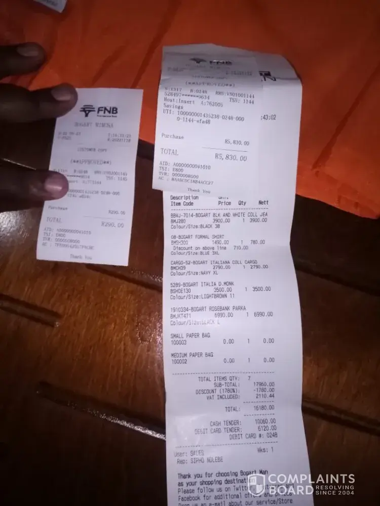 Bogart Man Bloemfontein Mimosa - Unfair costing & treatment to the customer